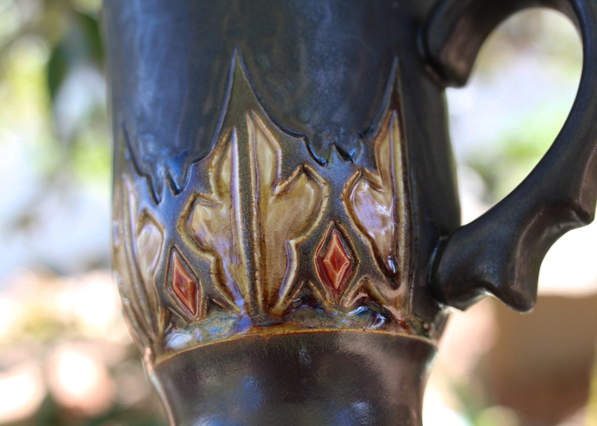 Thornfell, inspired by twisted bramble and iron gates. Haunted manor surrounded by fog and fallen leaves. Spilled blood on cobblestone, candlelight shifting shadows, a damp heaviness in the air. One of a kind piece that will never be replicated.